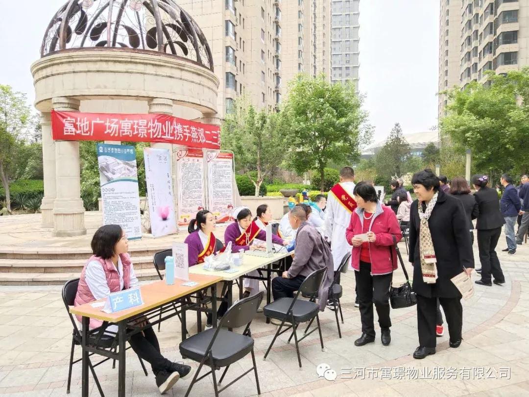 为更好的服务社区居民,普及健康知识,提高生活健康水平,让小区居民更加有幸福感和获得感,2019年4月28日,富地广场寓璟物业联合燕郊二三医院在小区内开展免费义诊活动。
