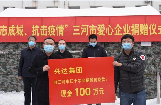 面对突如其来的疫情及加快蔓延的严重形势,在以习近平同志为核心的党中央领导下,为全力支持湖北疫情防控工作,携手打赢疫情防控阻击战,各省各级响应号召、迅速行动,在投入大量人力物力参与疫情防控的同时,河北兴达建工集团积极组织向红十字会为湖北疫情防控捐款100万元,表达兴达集团对湖北人民的深厚情谊和对疫情防控工作的坚定支持,在这场没有硝烟的疫情防控狙击战中,河北兴达建工集团始终与湖北人民站在一起!