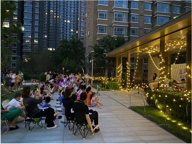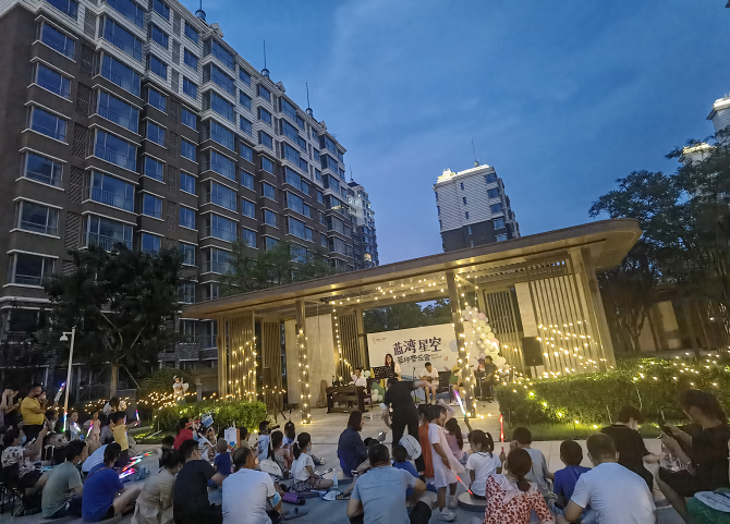 在这个美好的仲夏夜,孩子们和家人一起在草坪上席地而坐,华灯初上时,星空点点,晚风习习,动感的BGM、美妙的歌声及优美的现场布置,开启了夏威夷蓝湾业主们浪漫的仲夏夜生活。在场的每一个人,都如同漫天星辰,在现场散发着美好生活的光芒,在大自然的环抱中,友好睦邻,拉近心的距离。
